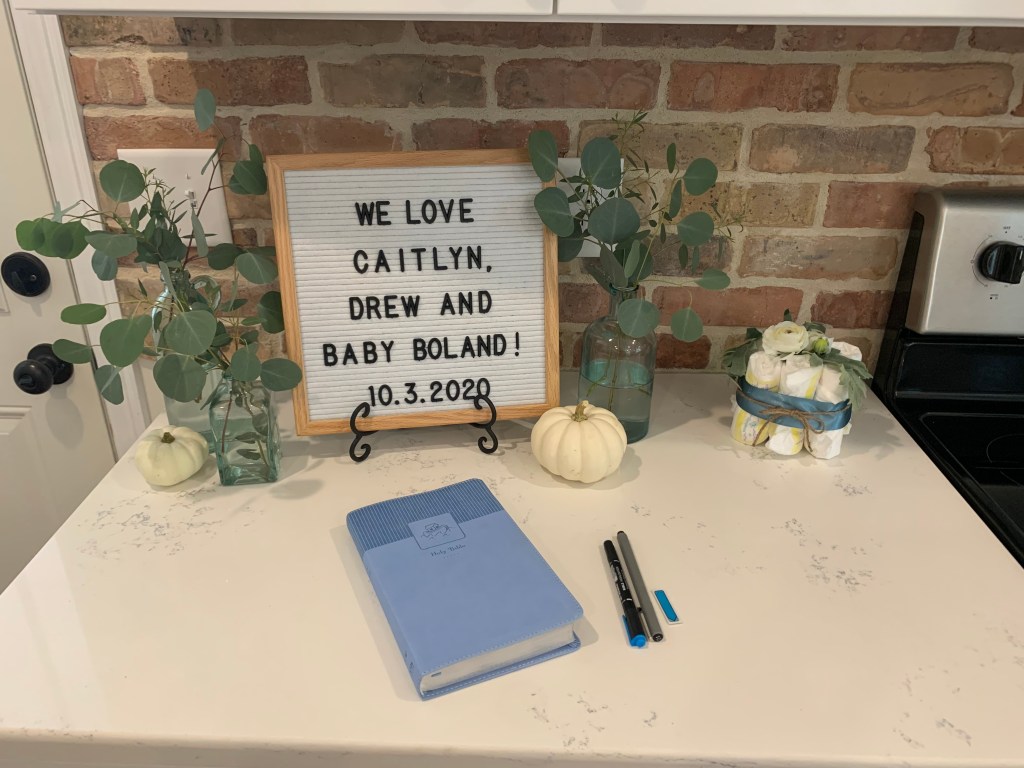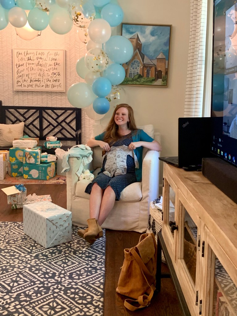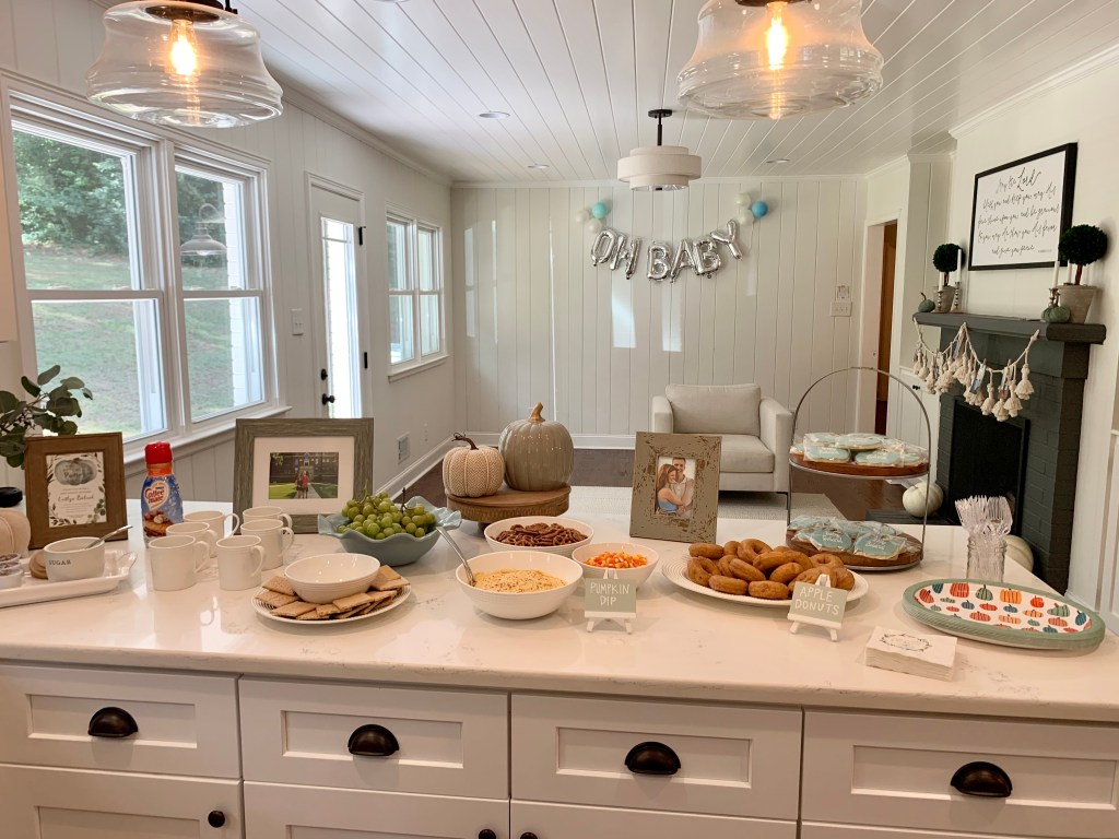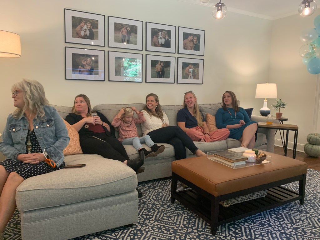 We had a virtual/in-person hybrid shower so that Cait’s friends from Boston and out of town could join! The theme was “A little pumpkin is on the way!” It was the most perfect fall day. We enjoyed time hanging out and eating fall snacks, opening gifts, praying over Caitlyn, and taking pictures. It was truly a precious time.